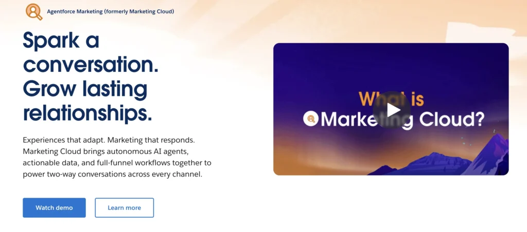 - Salesforce Marketing Cloud: Best for enterprise teams already on the Salesforce platform with deep AI and CRM integration.